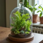 Tips: Use a mix of ferns, ivy, and tropical plants. Incorporate decorative rocks and driftwood for visual interest. Ensure good air circulation by occasionally opening the dome.