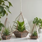 Hanging terrariums are a fantastic way to add greenery to your space without taking up valuable surface area. These are perfect for small apartments or rooms with limited floor space. Choose a hanging terrarium with a macrame holder for a bohemian vibe, or opt for a sleek metal frame for a modern look. Fill your hanging terrarium with air plants or small ferns that can thrive in indirect light. This design is ideal for creating a relaxing atmosphere in bedrooms or living rooms.