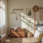 Keep your boho bedroom organized and clutter-free with stylish, boho-chic storage solutions, like woven baskets, vintage trunks, and macrame hangers. This adds a decorative touch to your space while keeping essentials within reach.