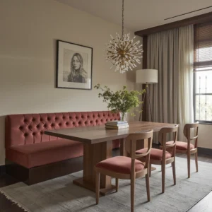 Mint green is a refreshing and calming color that works beautifully in a dining room. Pair mint green walls with white furniture and natural wood accents for a modern, airy feel. Adding a mint green rug can further enhance the cohesive look. This design is perfect for contemporary and Scandinavian-style homes.